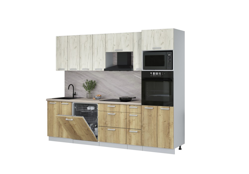 Кухонный гарнитур Мила Лайт 2,7-ПМ1 (Дуб белый/Дуб золотой/Травертин) фабрика Интерлиния