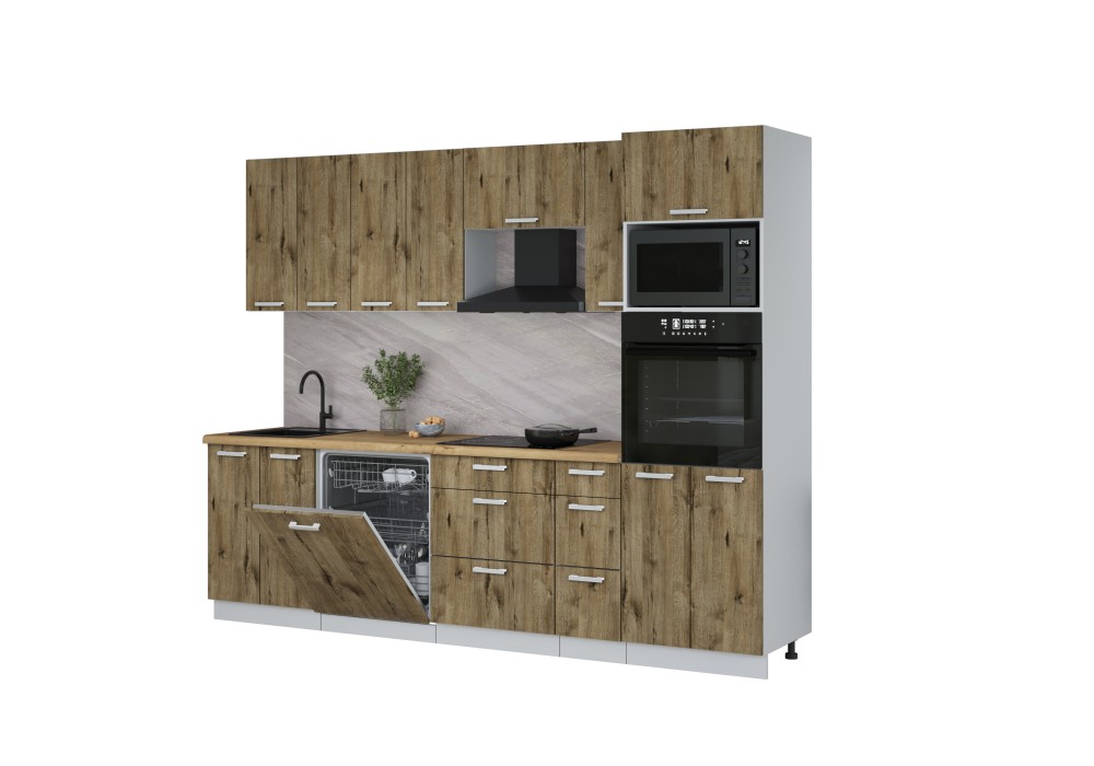 Кухонный гарнитур Мила Лайт 2,7-ПМ1 (Дуб Веллингтон/Дуб Веллингтон/Дуб бунратти) фабрика Интерлиния