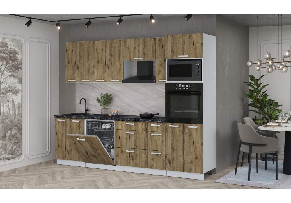 Кухонный гарнитур Мила Лайт 2,7-ПМ1 (Дуб Веллингтон/Дуб Веллингтон/Кастилло темный) фабрика Интерлиния