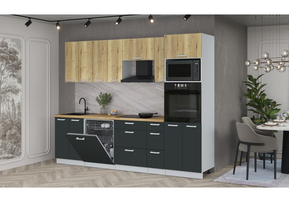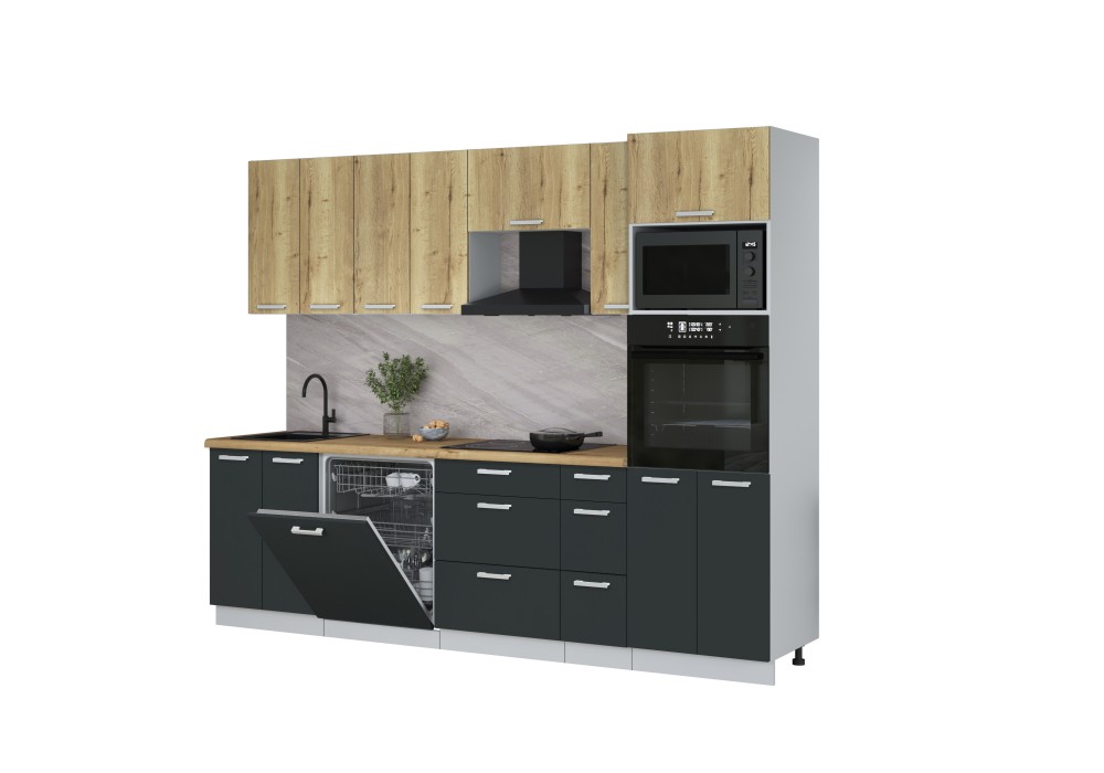 Кухонный гарнитур Мила Лайт 2,7-ПМ1 (Дуб золотой/Антрацит/Дуб бунратти) фабрика Интерлиния