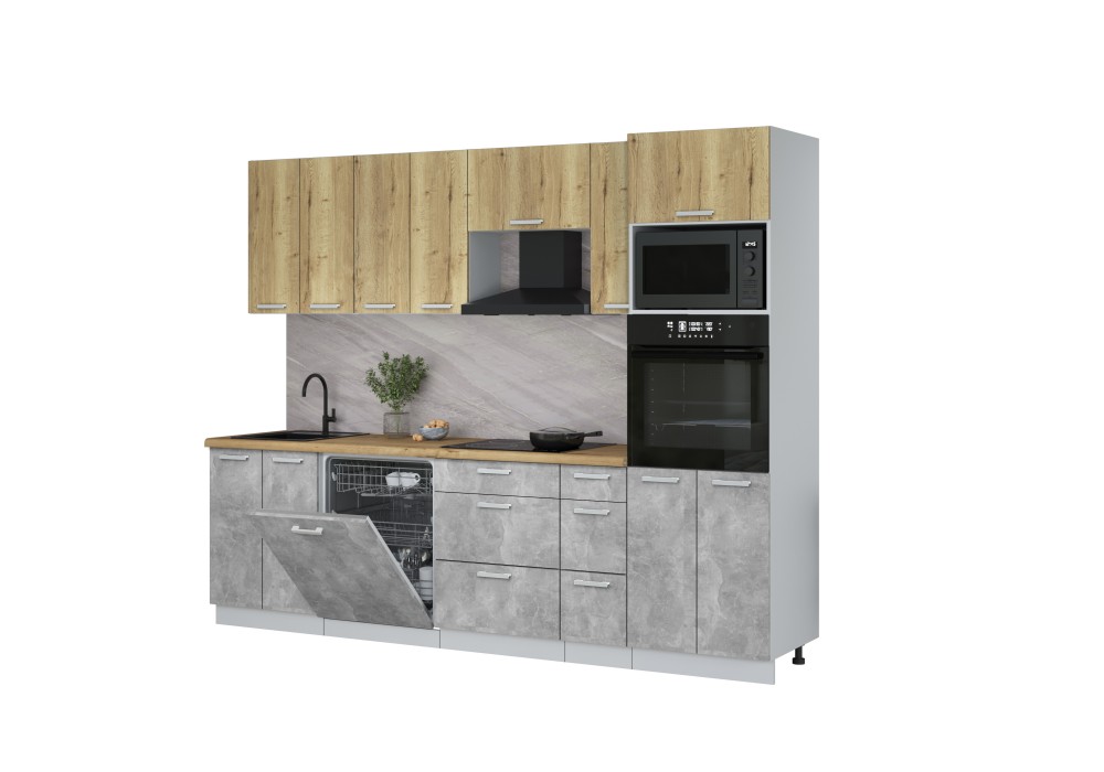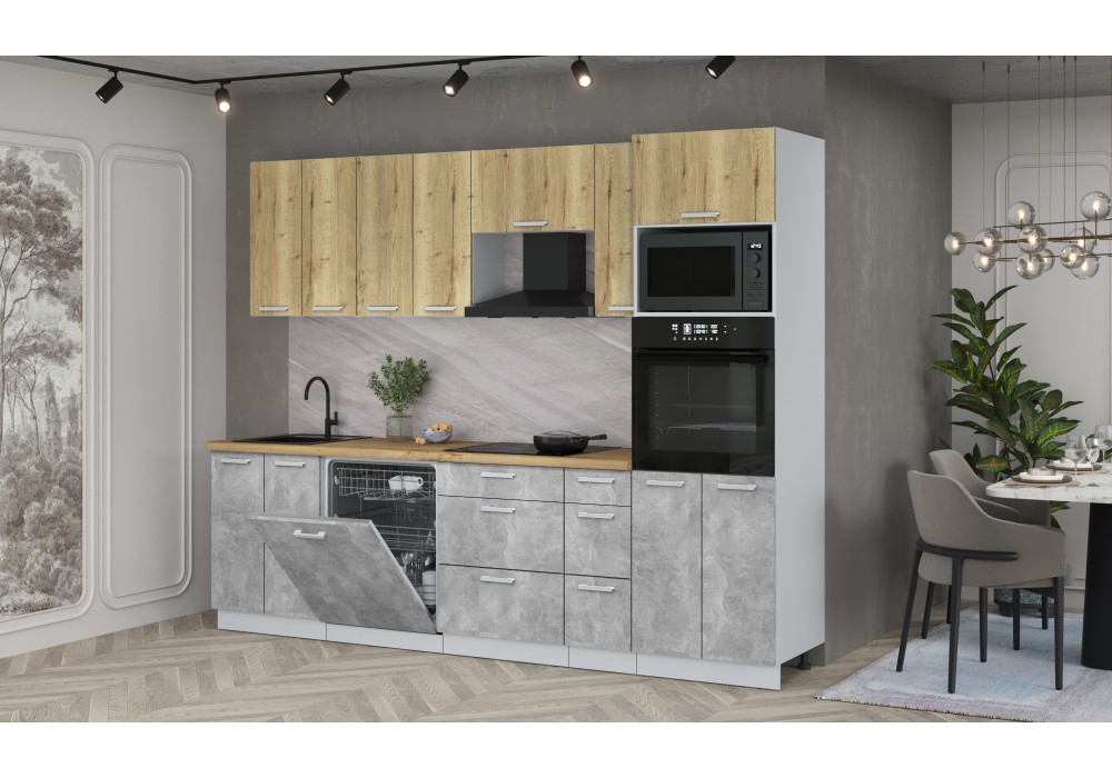 Кухонный гарнитур Мила Лайт 2,7-ПМ1 (Дуб золотой/Бетон/Дуб бунратти) фабрика Интерлиния