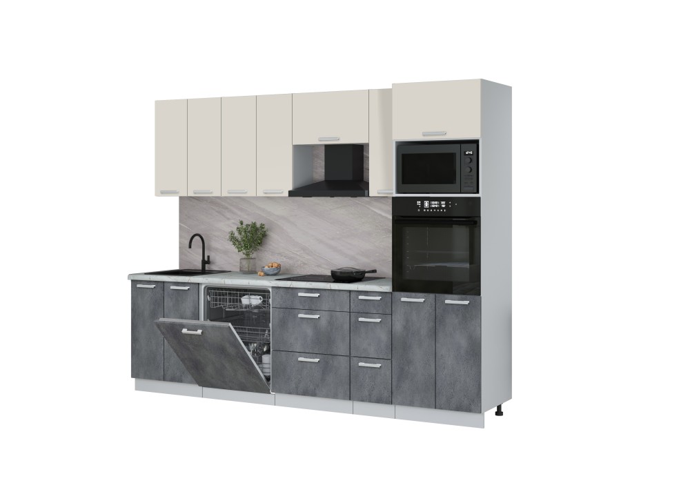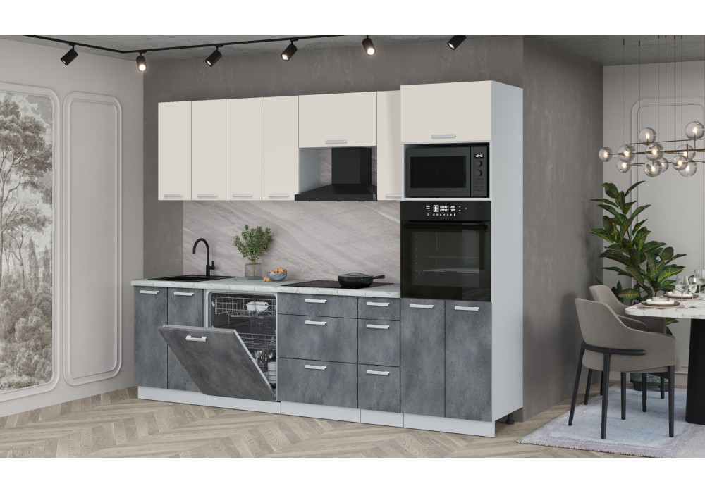 Кухонный гарнитур Мила Лайт 2,7-ПМ1 (Персидский жемчуг/Бетон Портленд/Серый каспий) фабрика Интерлиния