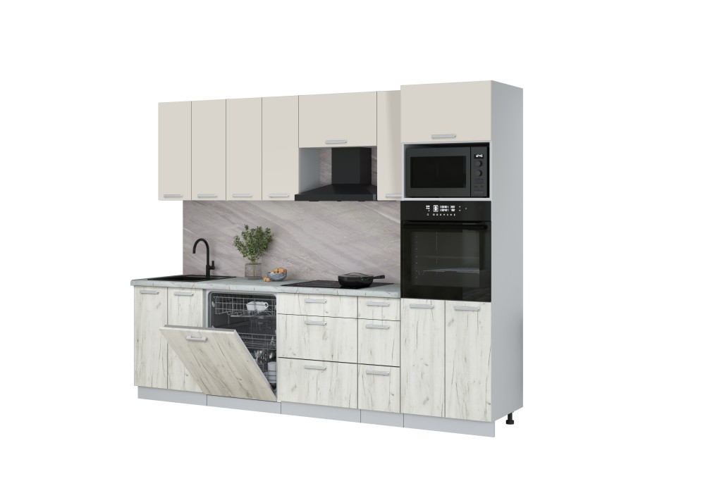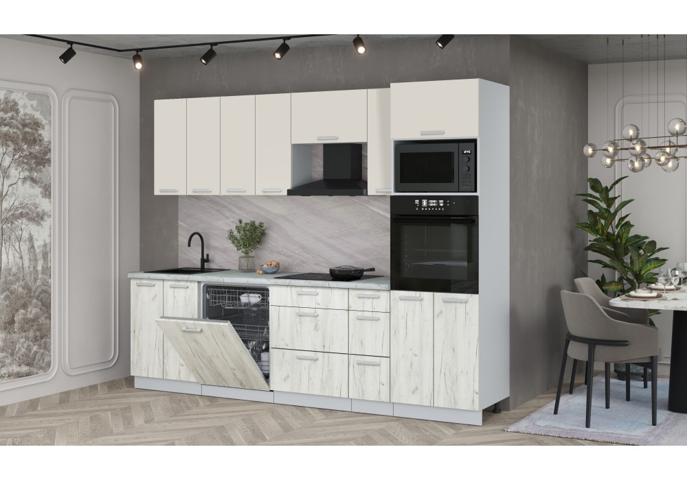 Кухонный гарнитур Мила Лайт 2,7-ПМ1 (Персидский жемчуг/Дуб белый/Серый каспий) фабрика Интерлиния