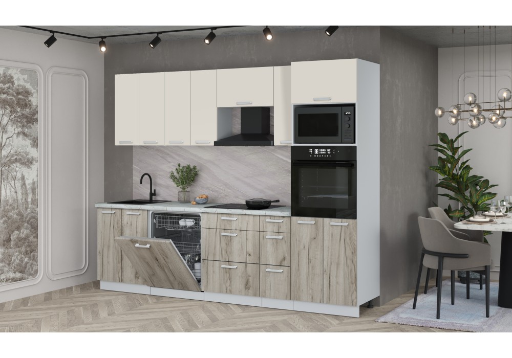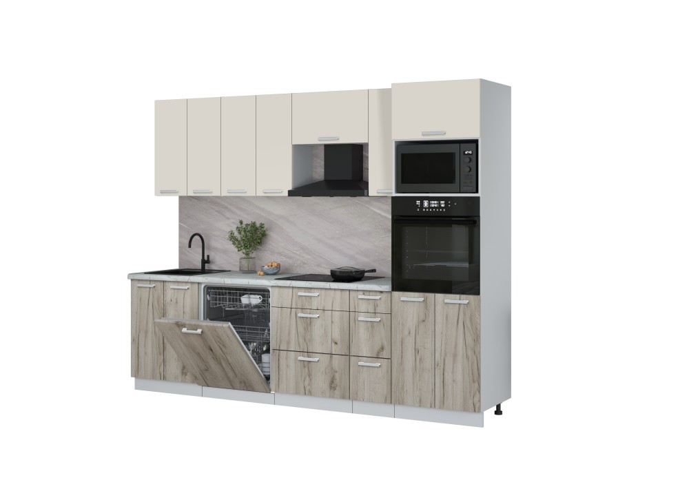 Кухонный гарнитур Мила Лайт 2,7-ПМ1 (Персидский жемчуг/Дуб серый/Серый каспий) фабрика Интерлиния