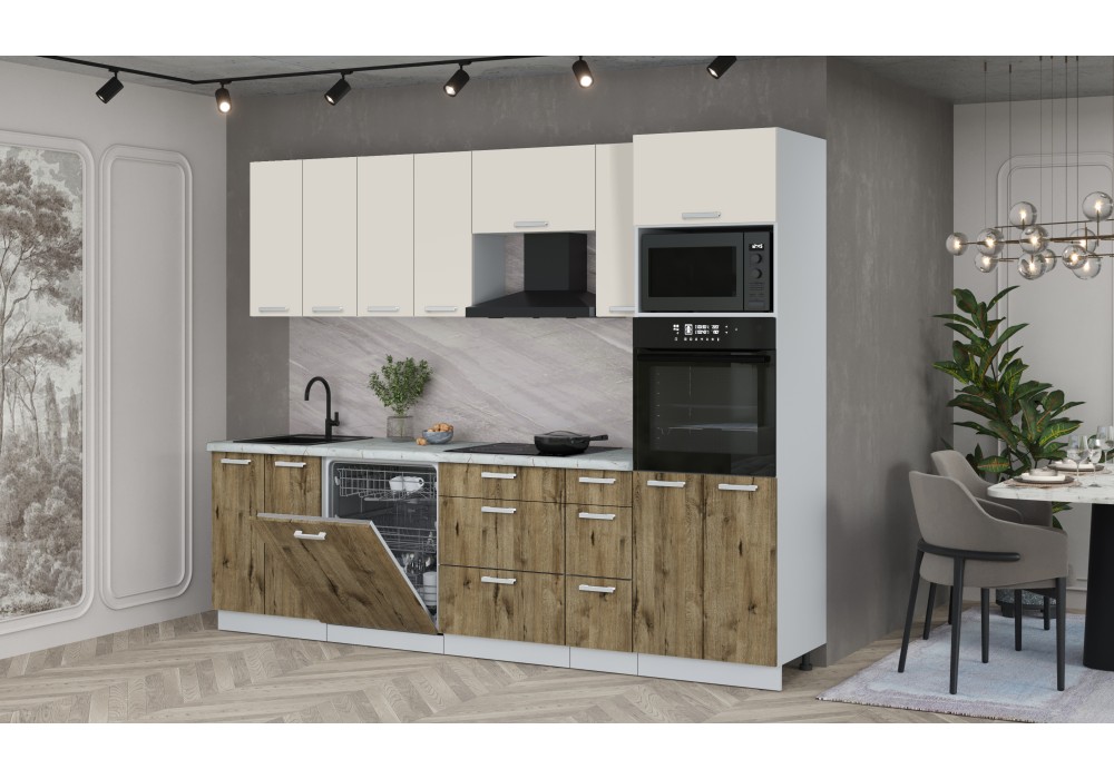Кухонный гарнитур Мила Лайт 2,7-ПМ1 (Персидский жемчуг/Дуб Веллингтон/Серый каспий) фабрика Интерлиния