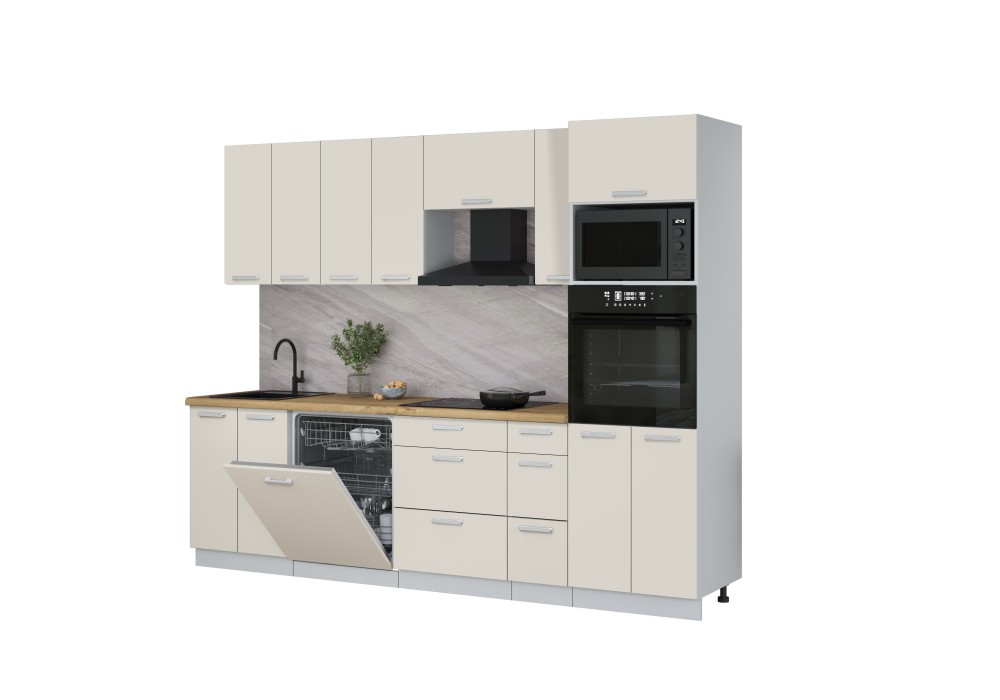 Кухонный гарнитур Мила Лайт 2,7-ПМ1 (Персидский жемчуг/Персидский жемчуг/Дуб бунратти) фабрика Интерлиния