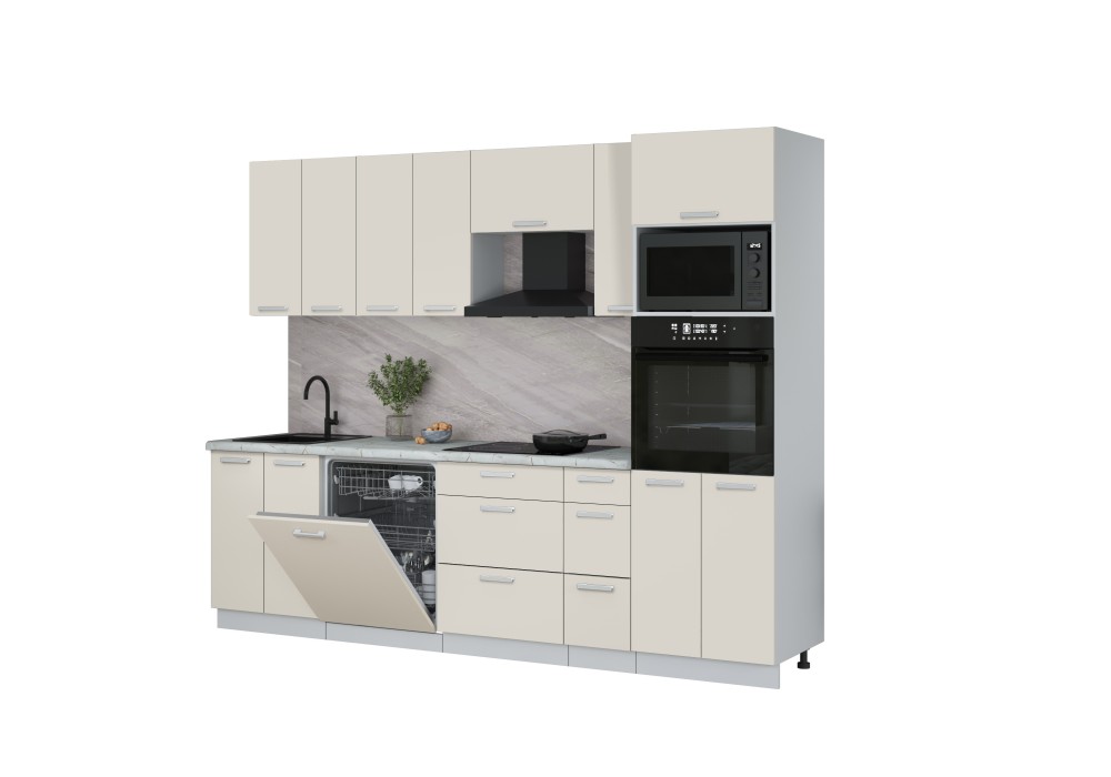 Кухонный гарнитур Мила Лайт 2,7-ПМ1 (Персидский жемчуг/Персидский жемчуг/Серый каспий) фабрика Интерлиния