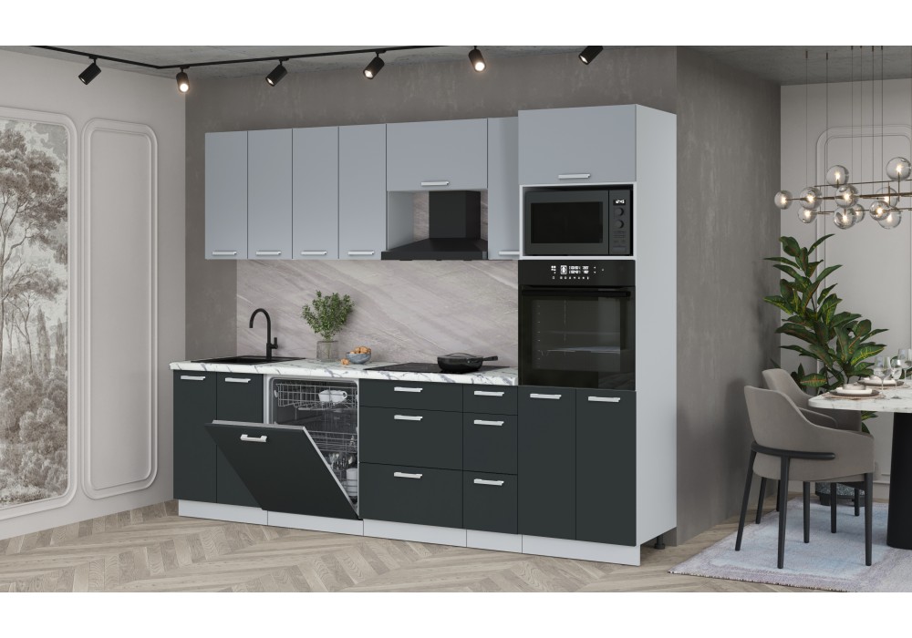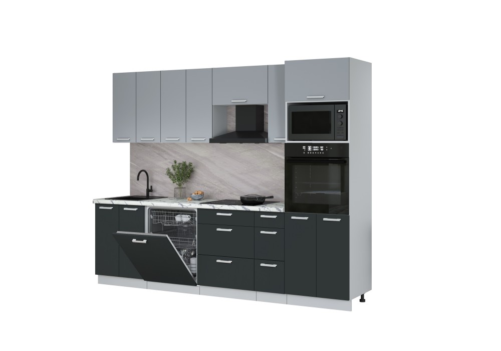 Кухонный гарнитур Мила Лайт 2,7-ПМ1 (Серебро/Антрацит/Гранит белый) фабрика Интерлиния