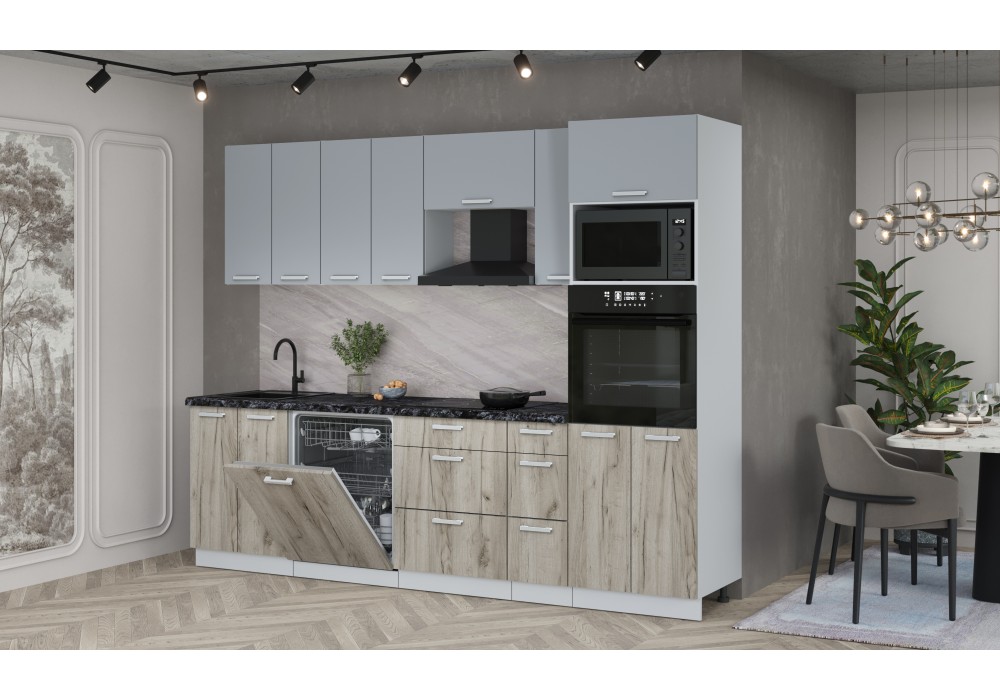 Кухонный гарнитур Мила Лайт 2,7-ПМ1 (Серебро/Дуб серый/Кастилло темный) фабрика Интерлиния