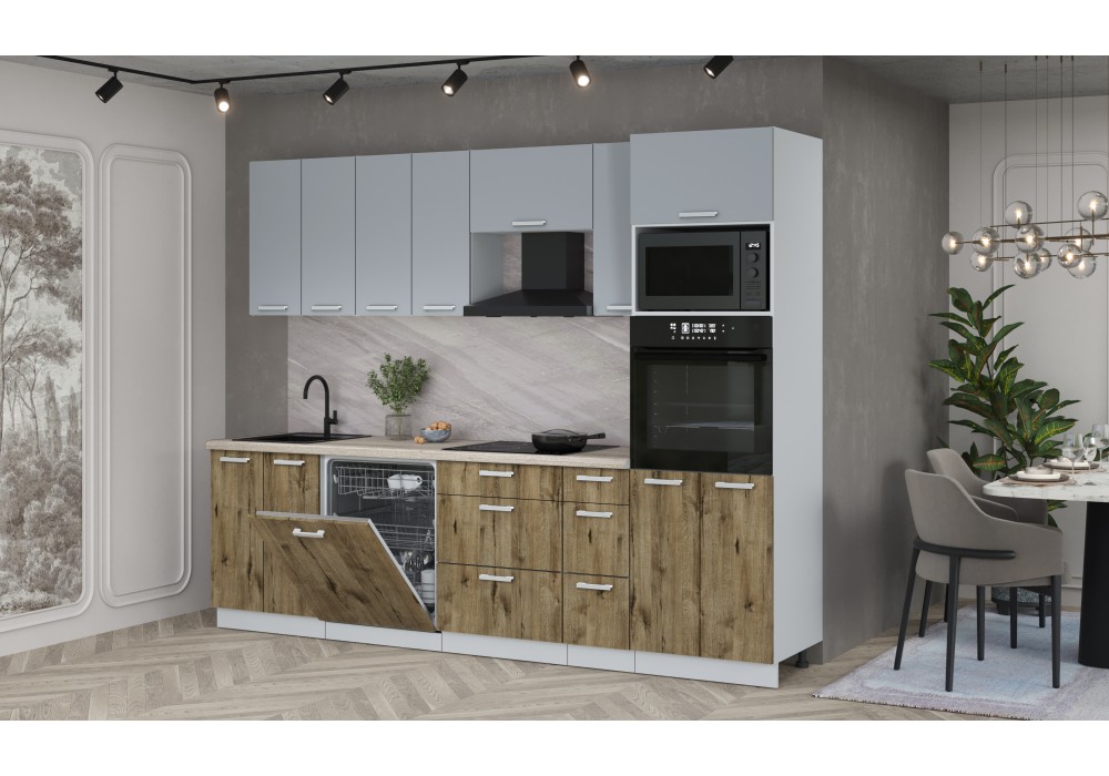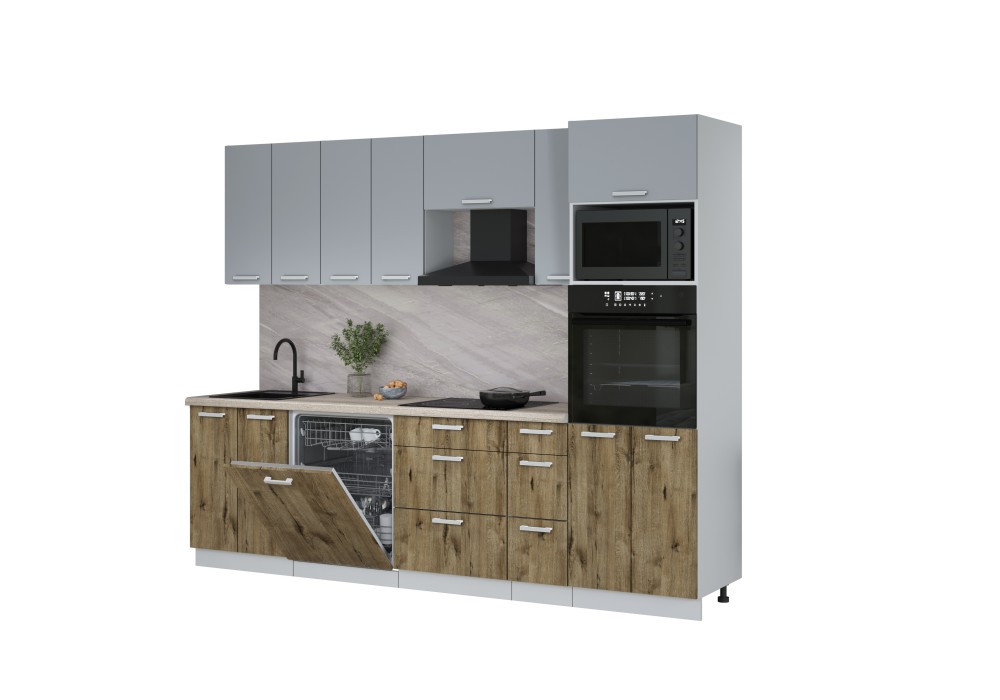 Кухонный гарнитур Мила Лайт 2,7-ПМ1 (Серебро/Дуб Веллингтон/Травертин) фабрика Интерлиния