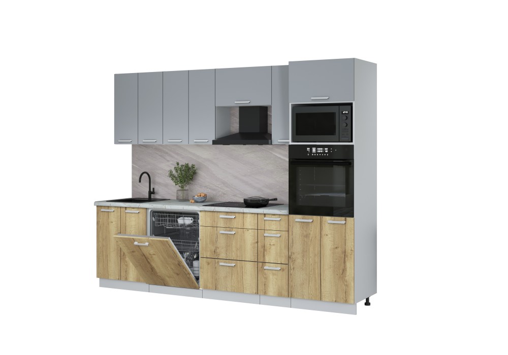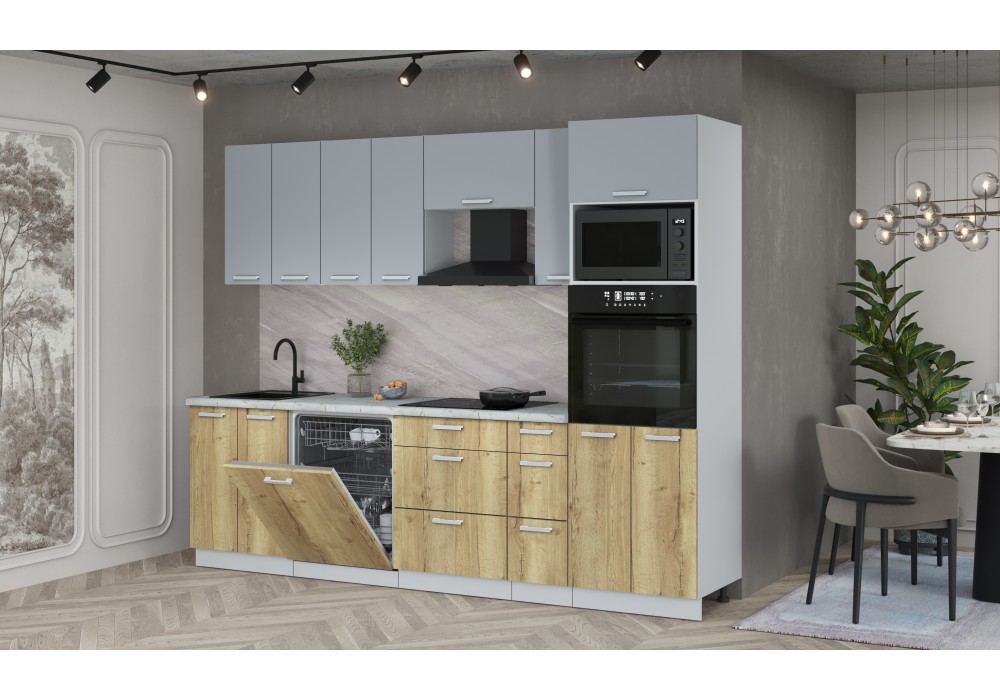 Кухонный гарнитур Мила Лайт 2,7-ПМ1 (Серебро/Дуб золотой/Серый каспий) фабрика Интерлиния