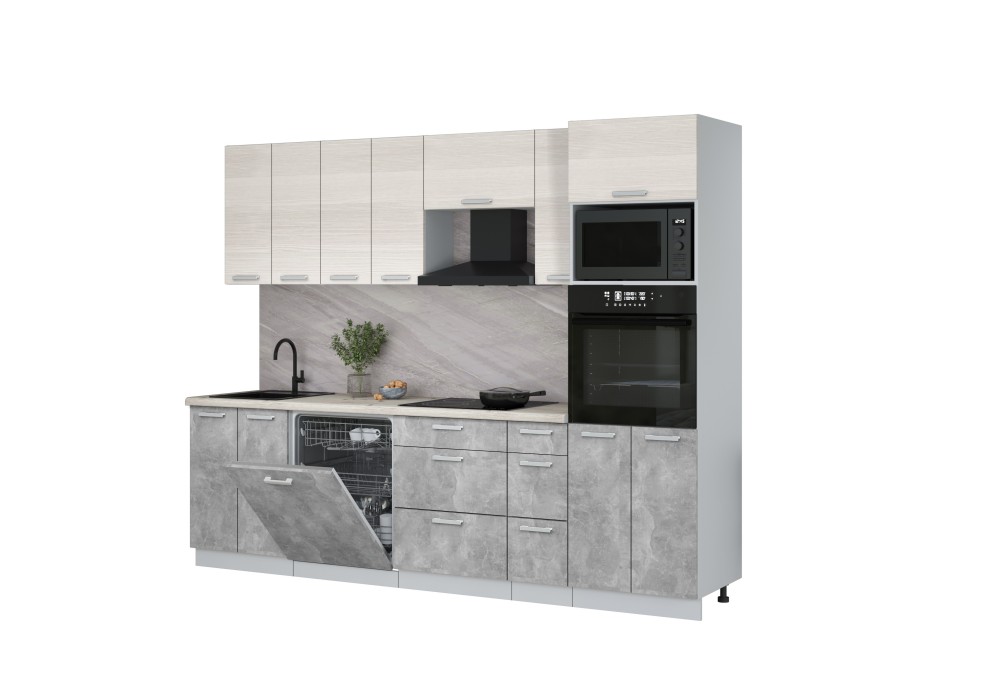 Кухонный гарнитур Мила Лайт 2,7-ПМ1 (Вудлайн кремовый/Бетон/Сосна бискайская) фабрика Интерлиния