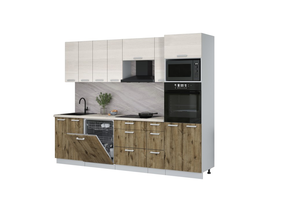 Кухонный гарнитур Мила Лайт 2,7-ПМ1 (Вудлайн кремовый/Дуб Веллингтон/Сосна Бискайская) фабрика Интерлиния