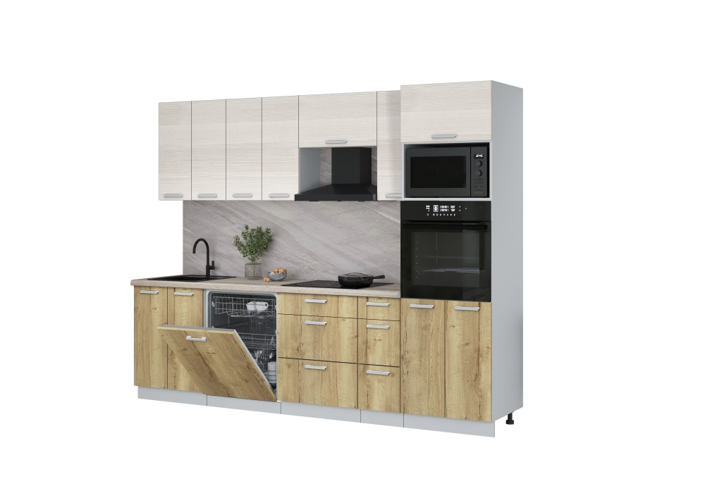 Кухонный гарнитур Мила Лайт 2,7-ПМ1 (Вудлайн кремовый/Дуб золотой/Травертин) фабрика Интерлиния