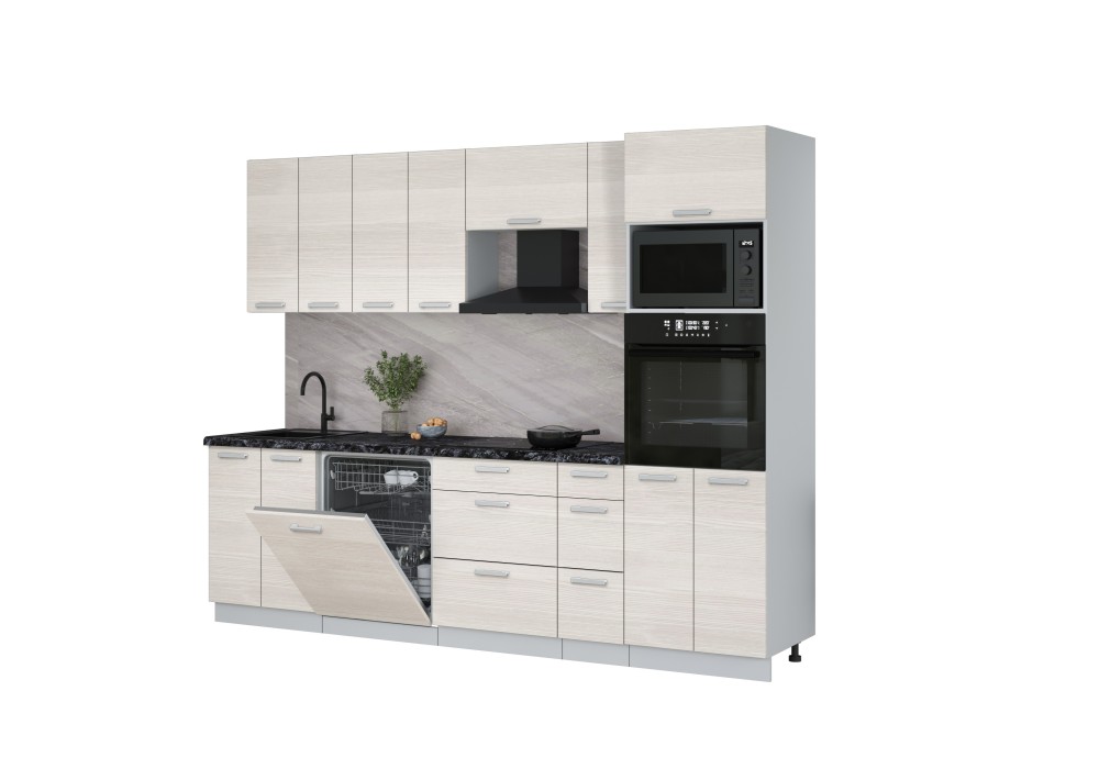 Кухонный гарнитур Мила Лайт 2,7-ПМ1 (Вудлайн кремовый/Вудлайн кремовый/Кастилло темный) фабрика Интерлиния