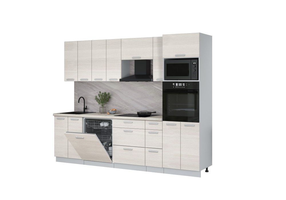 Кухонный гарнитур Мила Лайт 2,7-ПМ1 (Вудлайн кремовый/Вудлайн кремовый/Сосна Бискайская) фабрика Интерлиния