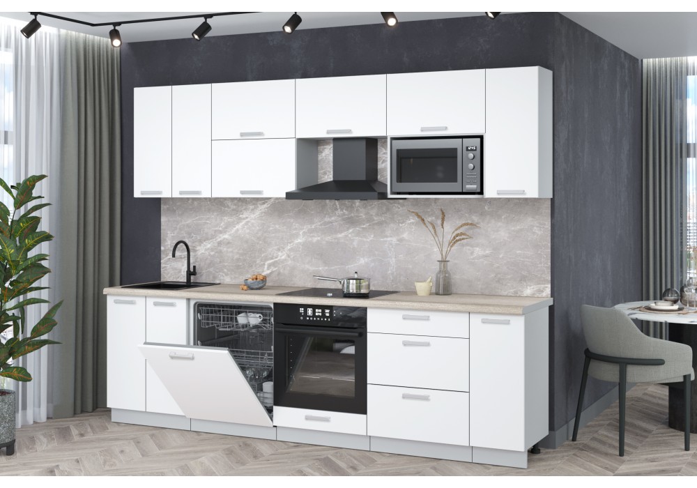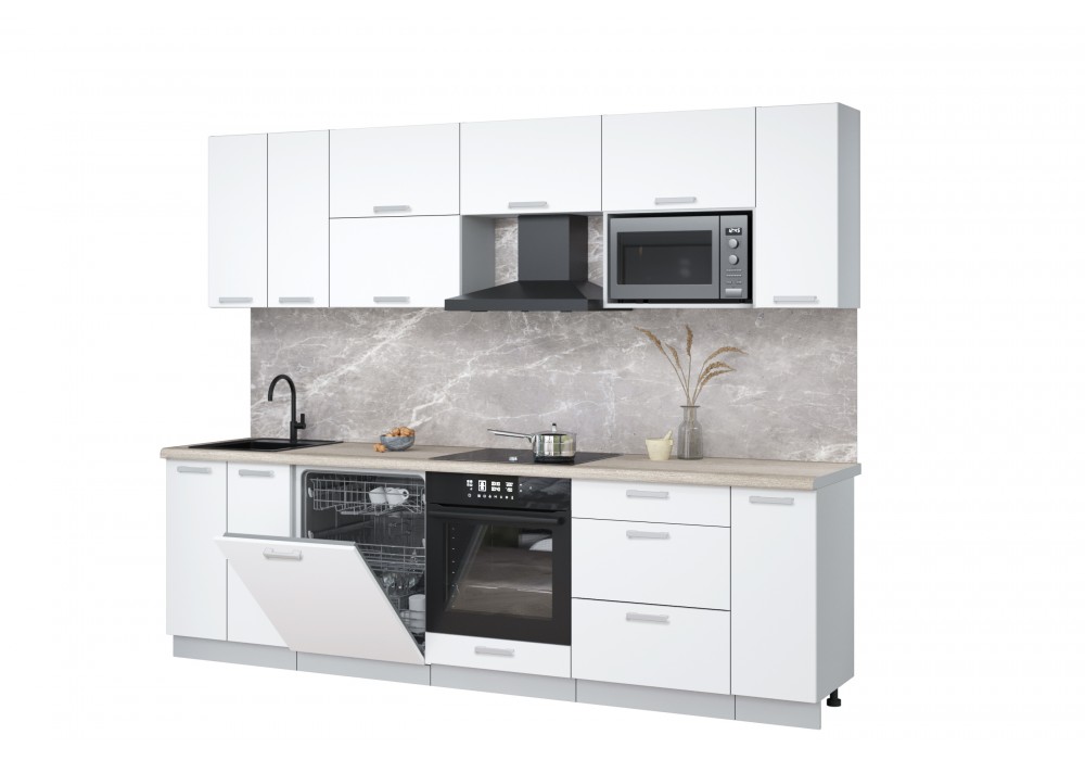 Кухонный гарнитур Мила Лайт 2,7-ПМ2 (Белый Платинум/Белый Платинум/Травертин) фабрика Интерлиния
