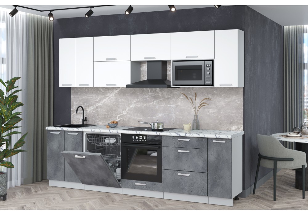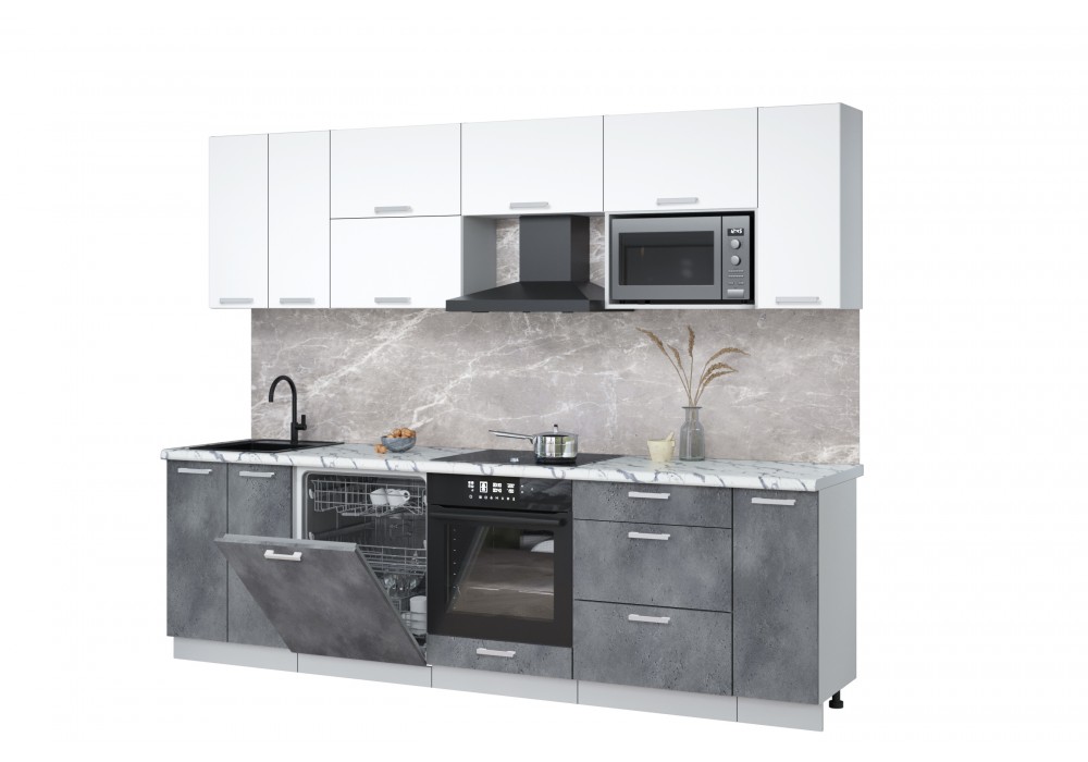 Кухонный гарнитур Мила Лайт 2,7-ПМ2 (Белый Платинум/Бетон портленд/Гранит белый) фабрика Интерлиния