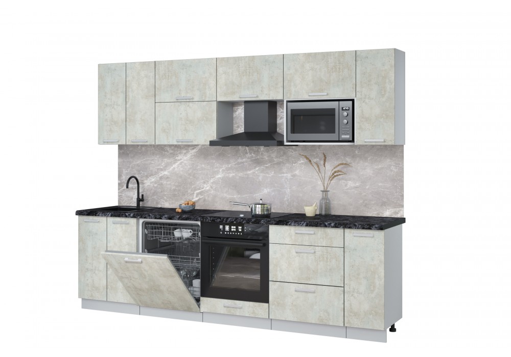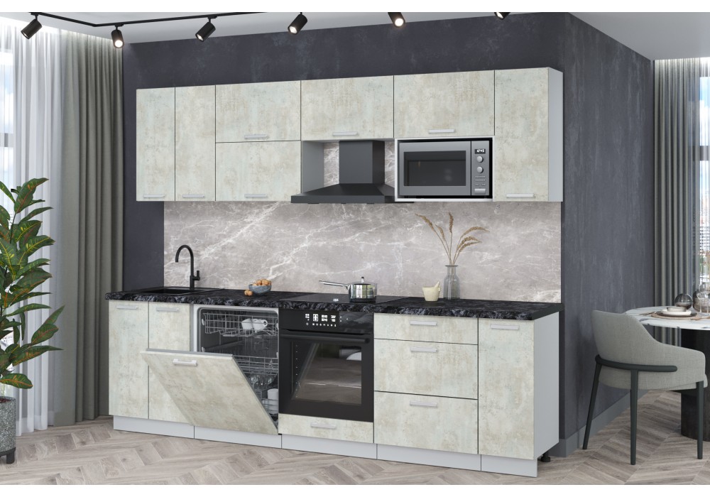 Кухонный гарнитур Мила Лайт 2,7-ПМ2 (Бетон лайт/Бетон лайт/Кастилло темный) фабрика Интерлиния