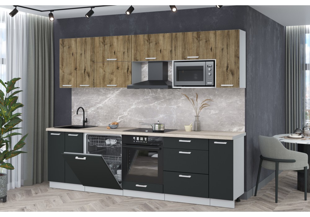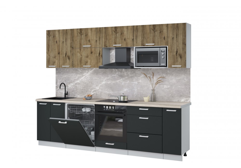 Кухонный гарнитур Мила Лайт 2,7-ПМ2 (Дуб веллингтон/Антрацит/Травертин) фабрика Интерлиния