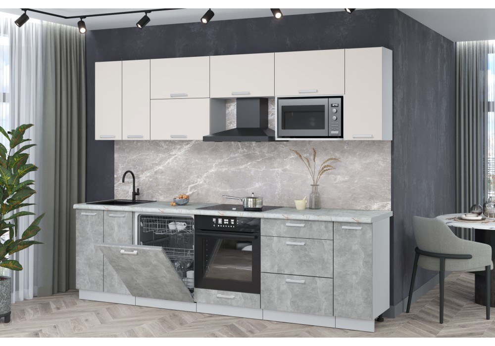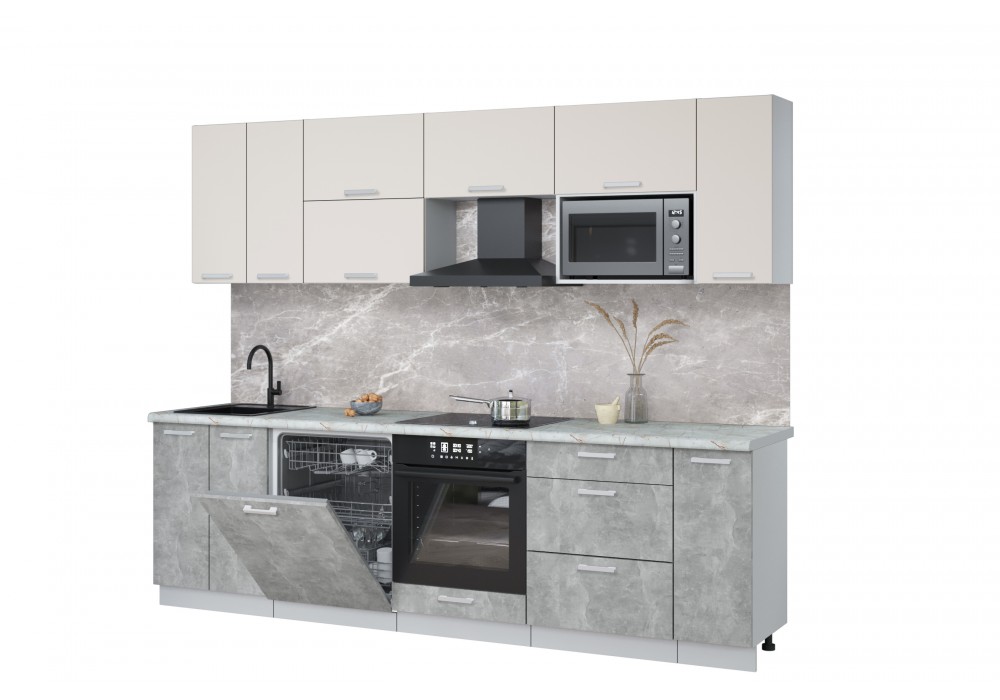 Кухонный гарнитур Мила Лайт 2,7-ПМ2 (Персидский жемчуг/Бетон/Серый каспий) фабрика Интерлиния
