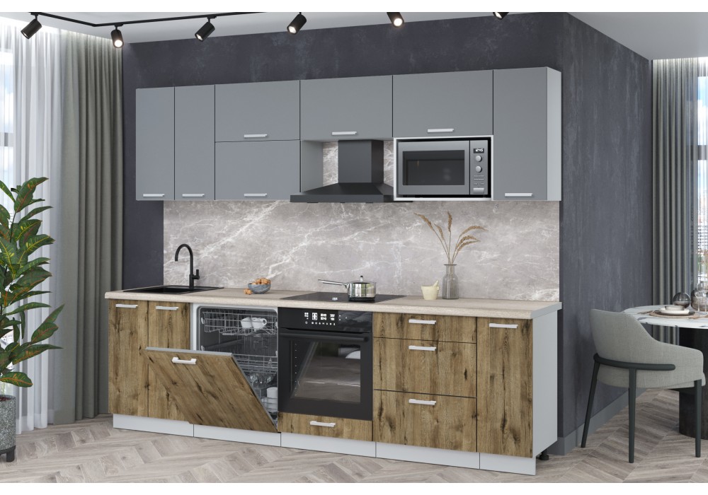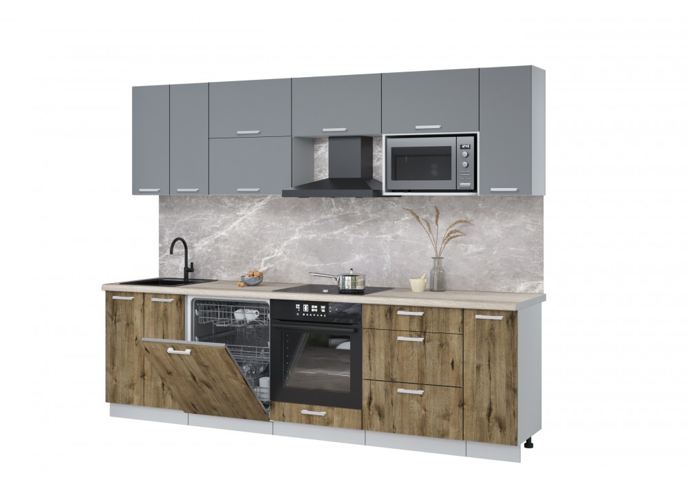 Кухонный гарнитур Мила Лайт 2,7-ПМ2 (Серебро/Дуб веллингтон/Травертин) фабрика Интерлиния