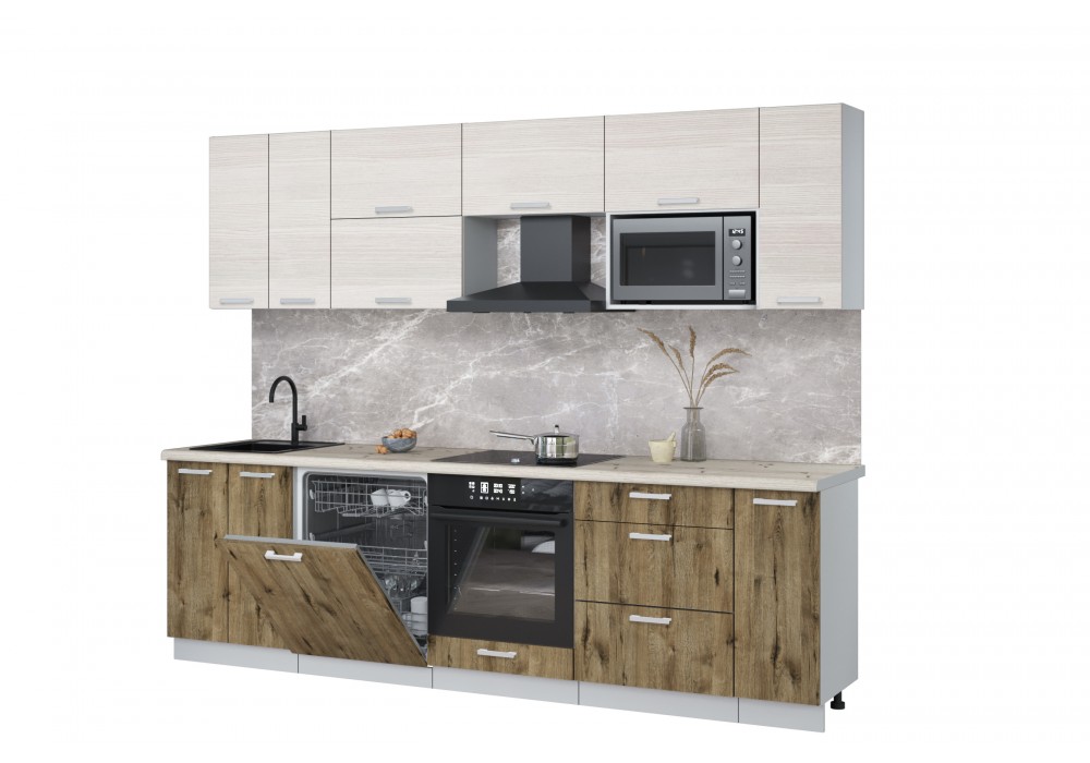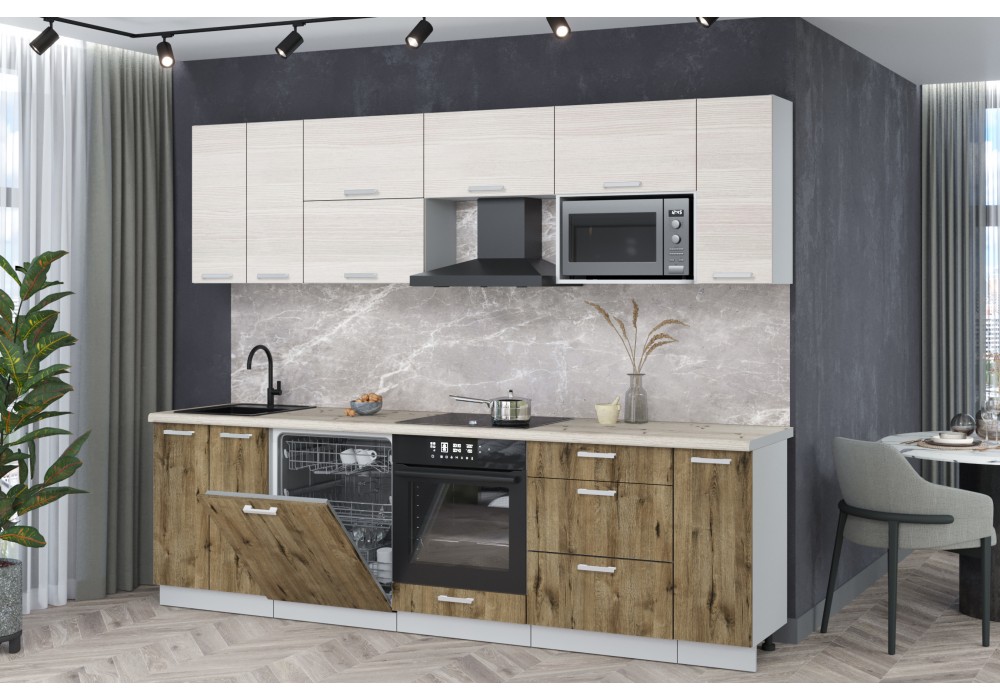 Кухонный гарнитур Мила Лайт 2,7-ПМ2 (Вудлайн кремовый/Дуб веллингтон/Сосна бискайская) фабрика Интерлиния