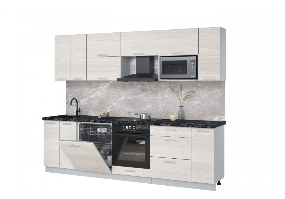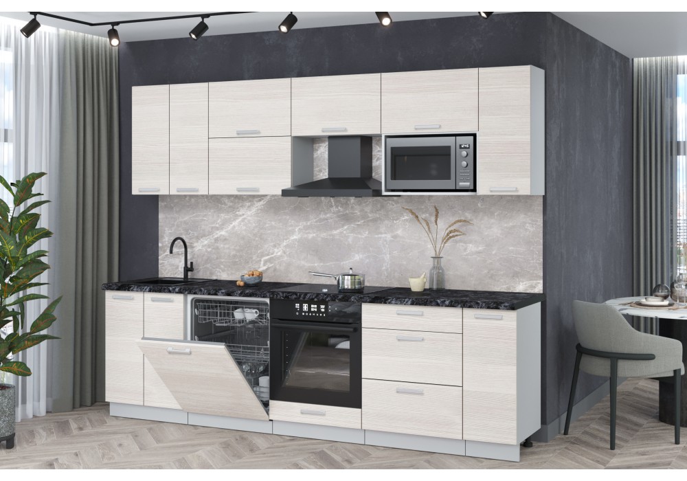 Кухонный гарнитур Мила Лайт 2,7-ПМ2 (Вудлайн кремовый/Вудлайн кремовый/Кастилло темный) фабрика Интерлиния