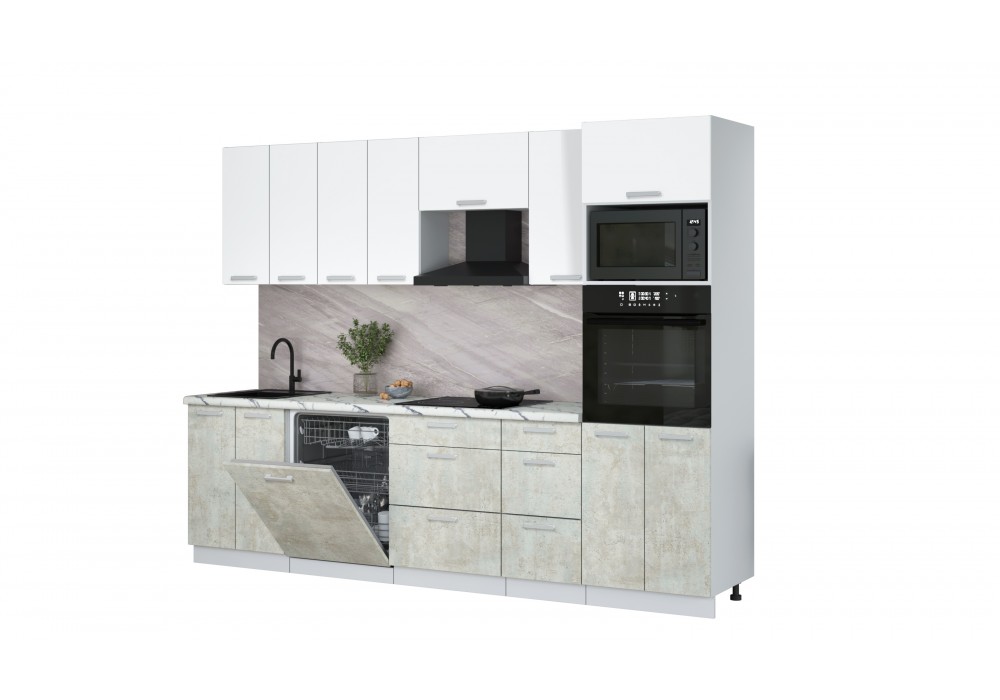 Кухонный гарнитур Мила Лайт 2,8-ПМ1 (Белый Платинум/Бетон лайт/Гранит белый) фабрика Интерлиния