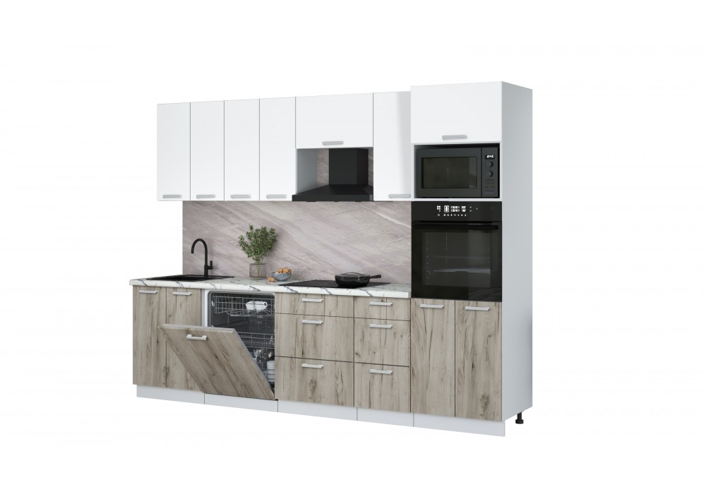 Кухонный гарнитур Мила Лайт 2,8-ПМ1 (Белый Платинум/Дуб серый/Гранит белый) фабрика Интерлиния