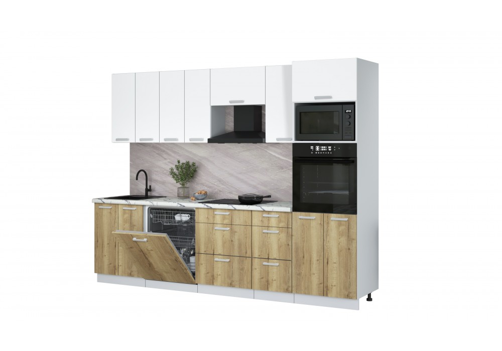 Кухонный гарнитур Мила Лайт 2,8-ПМ1 (Белый Платинум/Дуб золотой/Гранит белый) фабрика Интерлиния