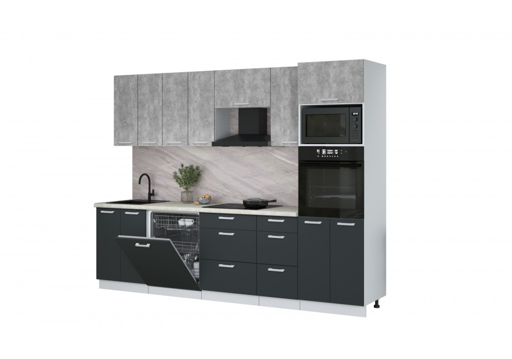 Кухонный гарнитур Мила Лайт 2,8-ПМ1 (Бетон/Антрацит/Опал светлый) фабрика Интерлиния