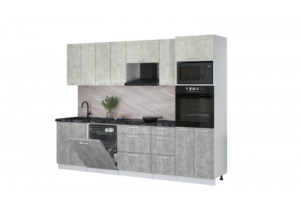 Кухонный гарнитур Мила Лайт 2,8-ПМ1 (Бетон лайт/Бетон/Кастилло темный) фабрика Интерлиния