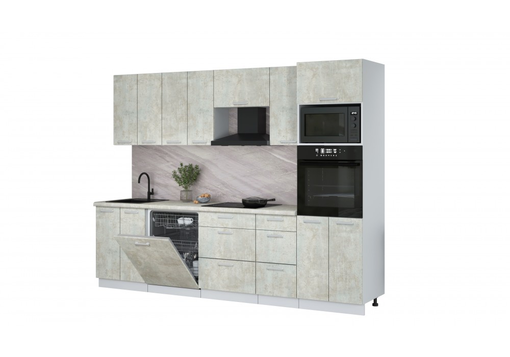 Кухонный гарнитур Мила Лайт 2,8-ПМ1 (Бетон лайт/Бетон лайт/Опал светлый) фабрика Интерлиния