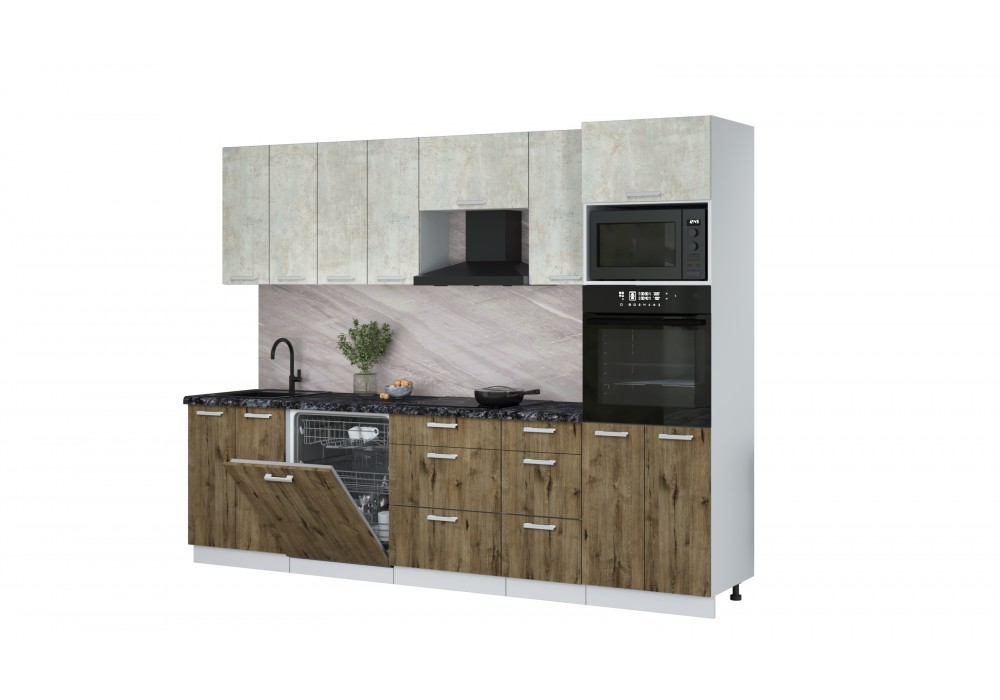Кухонный гарнитур Мила Лайт 2,8-ПМ1 (Бетон лайт/Дуб Веллингтон/Кастилло темный) фабрика Интерлиния