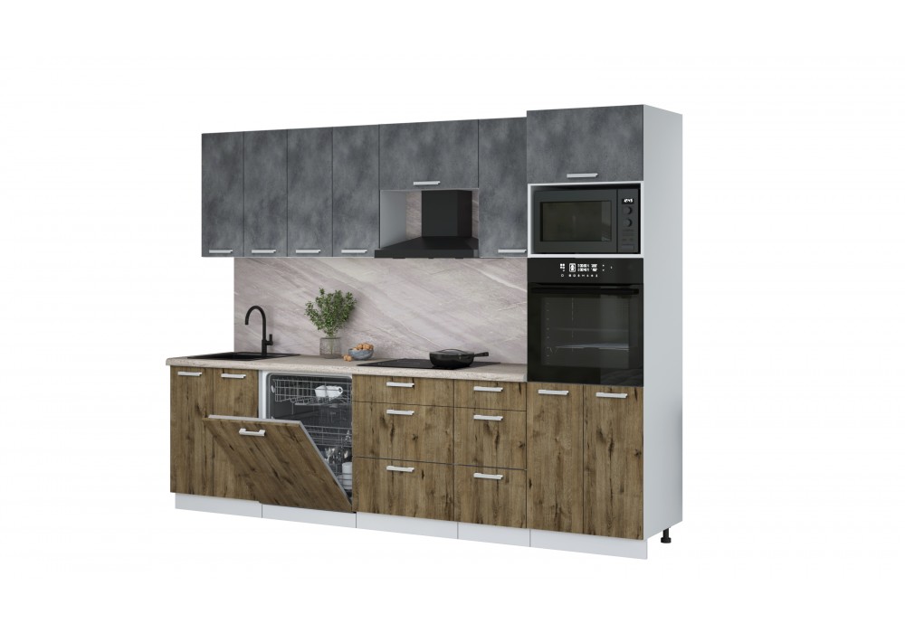 Кухонный гарнитур Мила Лайт 2,8-ПМ1 (Бетон Портленд/Дуб Веллингтон/Травертин) фабрика Интерлиния