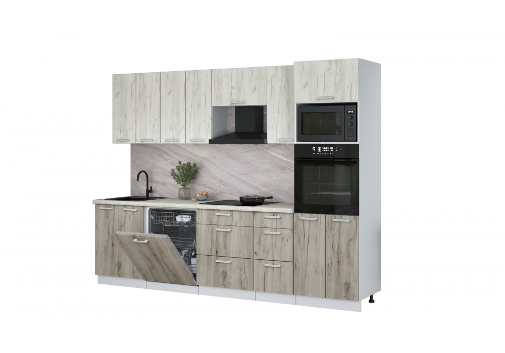 Кухонный гарнитур Мила Лайт 2,8-ПМ1 (Дуб белый/Дуб серый/Опал светлый) фабрика Интерлиния