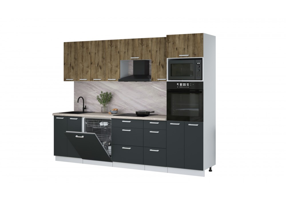 Кухонный гарнитур Мила Лайт 2,8-ПМ1 (Дуб Веллингтон/Антрацит/Травертин) фабрика Интерлиния