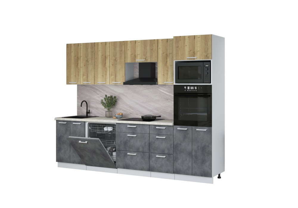 Кухонный гарнитур Мила Лайт 2,8-ПМ1 (Дуб золотой/Бетон Портленд/Опал светлый) фабрика Интерлиния