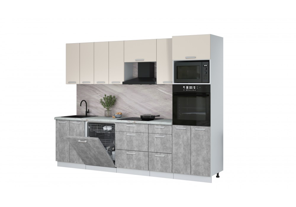 Кухонный гарнитур Мила Лайт 2,8-ПМ1 (Персидский жемчуг/Бетон/Серый каспий) фабрика Интерлиния