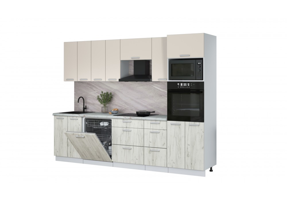 Кухонный гарнитур Мила Лайт 2,8-ПМ1 (Персидский жемчуг/Дуб белый/Серый каспий) фабрика Интерлиния