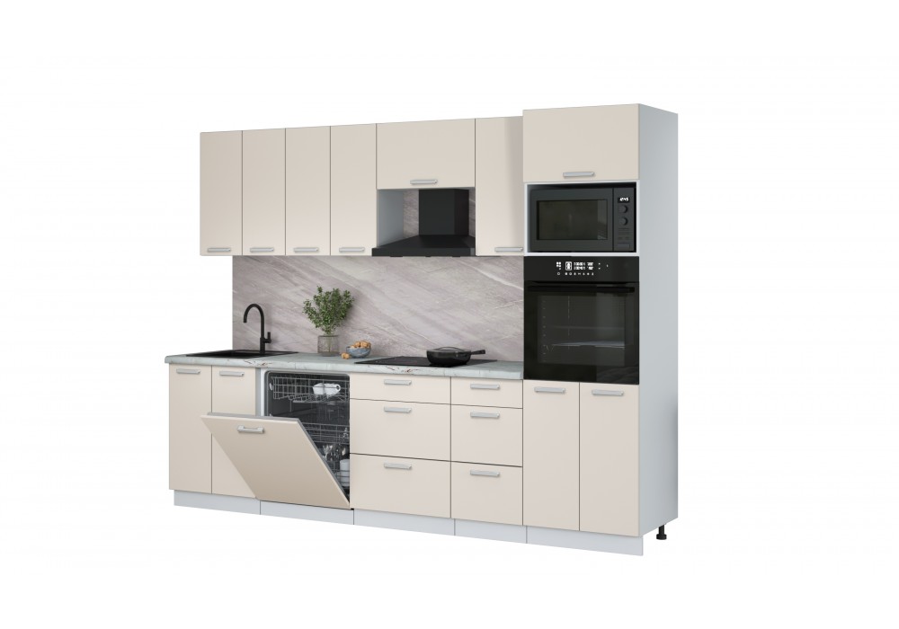 Кухонный гарнитур Мила Лайт 2,8-ПМ1 (Персидский жемчуг/Персидский жемчуг/Серый каспий) фабрика Интерлиния