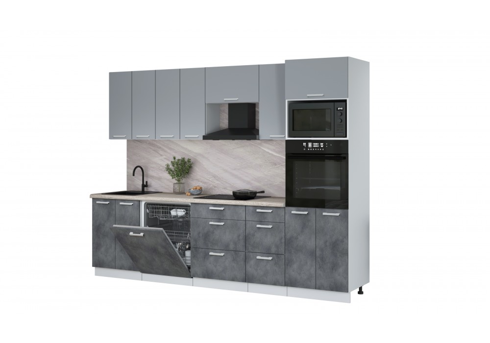 Кухонный гарнитур Мила Лайт 2,8-ПМ1 (Серебро/Бетон Портленд/Травертин) фабрика Интерлиния