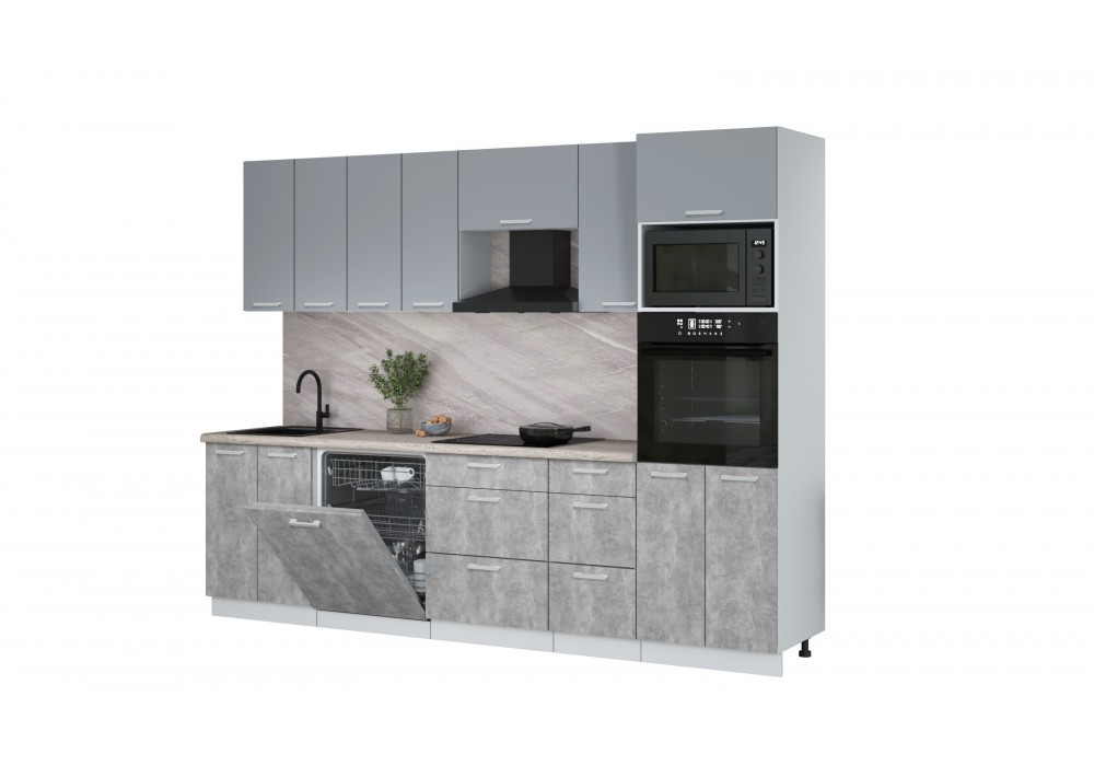 Кухонный гарнитур Мила Лайт 2,8-ПМ1 (Серебро/Бетон/Травертин) фабрика Интерлиния