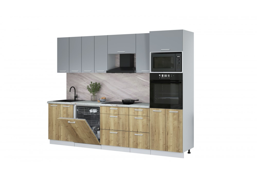 Кухонный гарнитур Мила Лайт 2,8-ПМ1 (Серебро/Дуб золотой/Серый каспий) фабрика Интерлиния