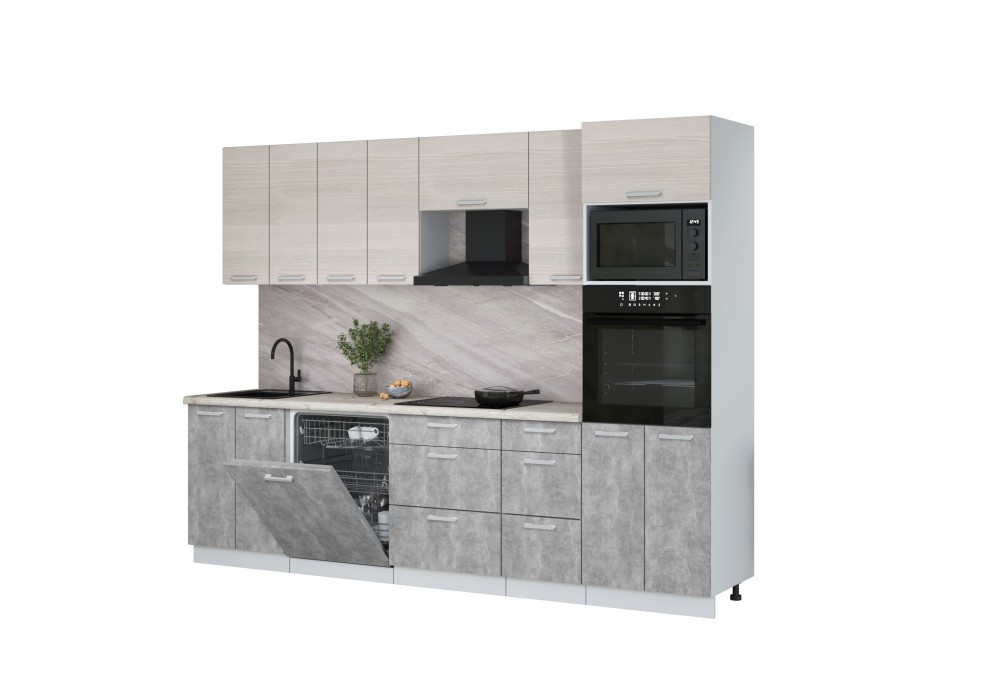 Кухонный гарнитур Мила Лайт 2,8-ПМ1 (Вудлайн кремовый/Бетон/Сосна бискайская) фабрика Интерлиния