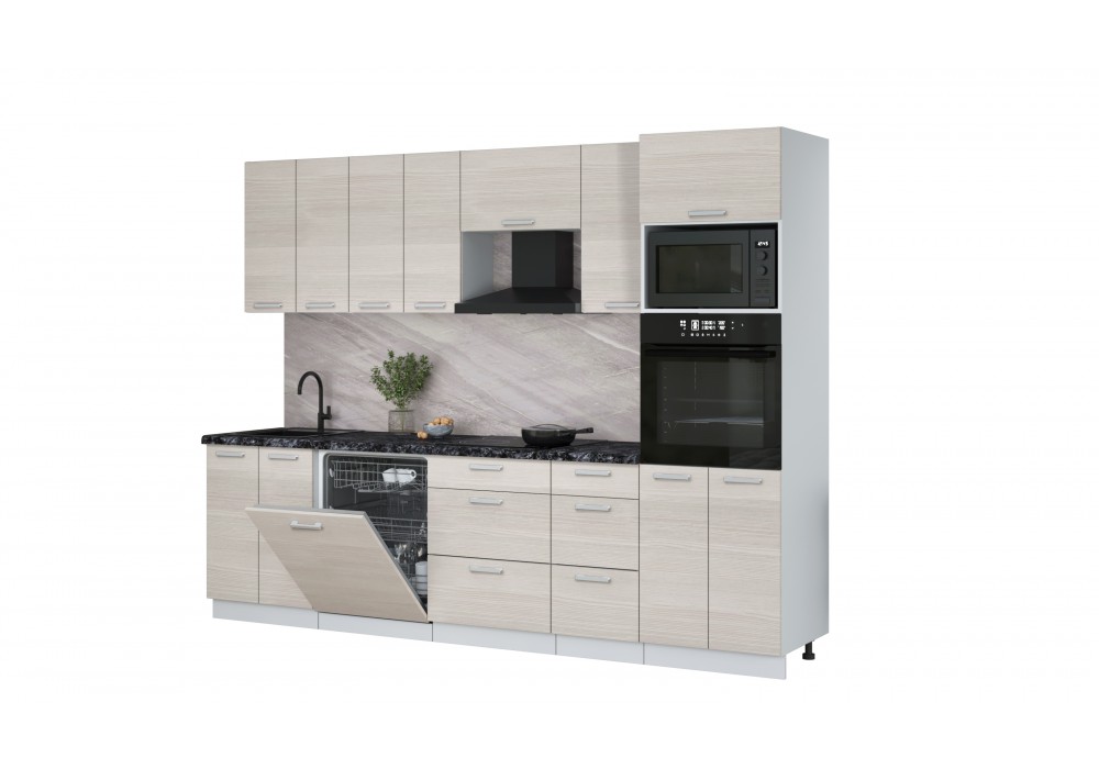 Кухонный гарнитур Мила Лайт 2,8-ПМ1 (Вудлайн кремовый/Вудлайн кремовый/Кастилло темный) фабрика Интерлиния
