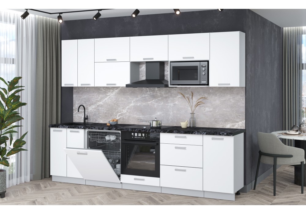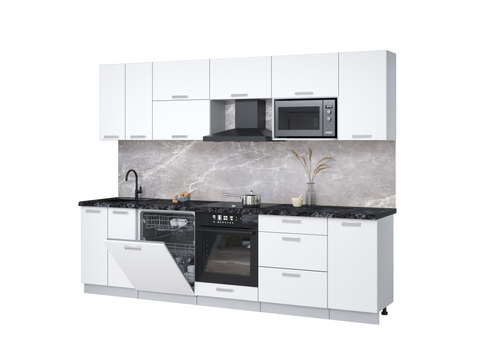 Кухонный гарнитур Мила Лайт 2,8-ПМ2 (Белый Платинум/Белый Платинум/Кастилло темный) фабрика Интерлиния