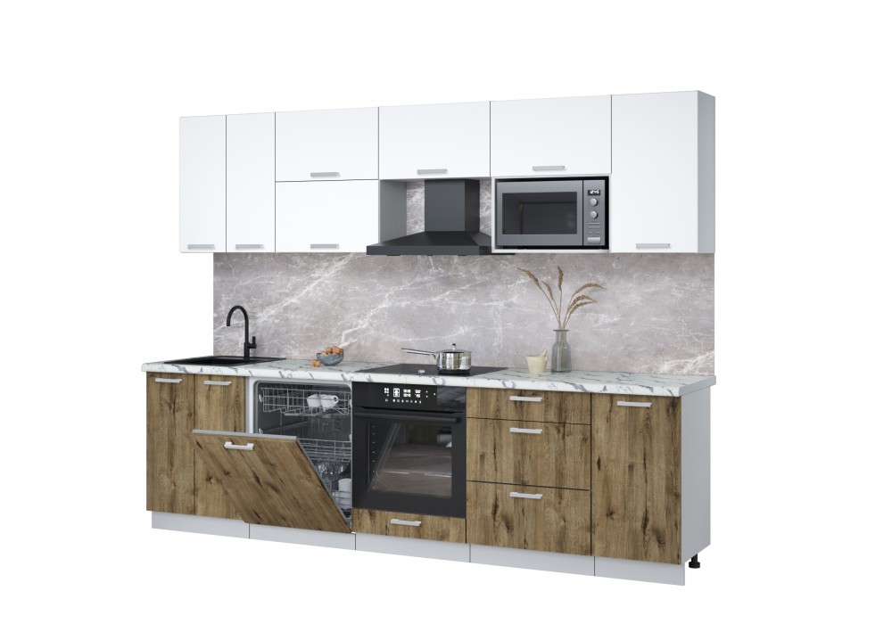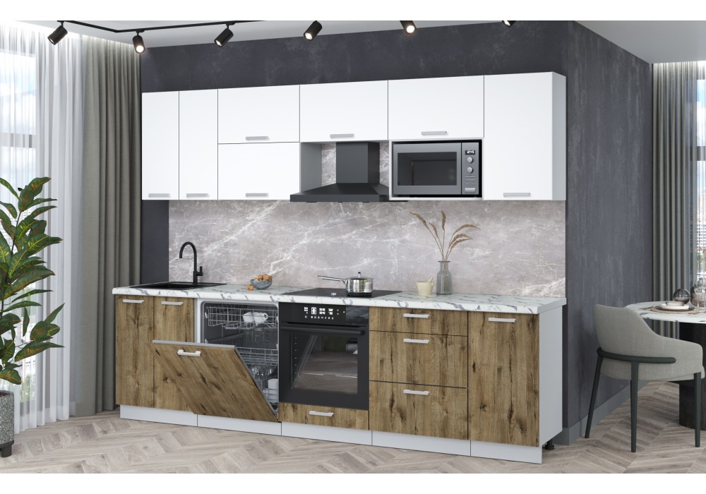 Кухонный гарнитур Мила Лайт 2,8-ПМ2 (Белый Платинум/Дуб веллингтон/Гранит белый) фабрика Интерлиния