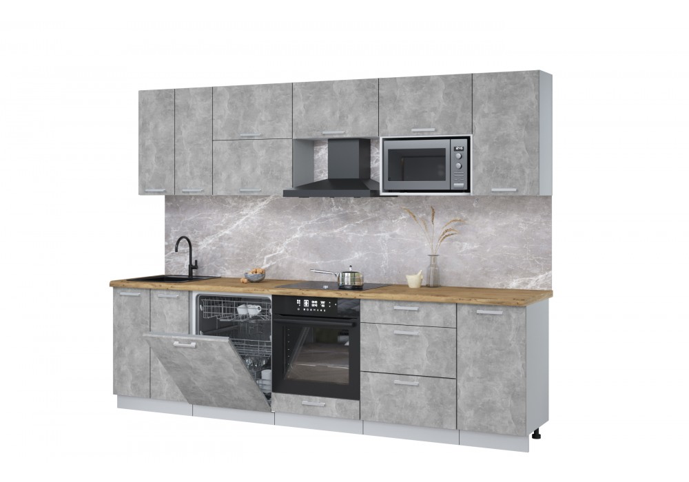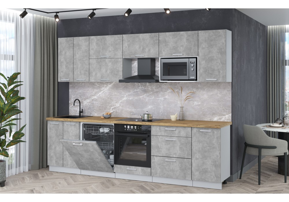 Кухонный гарнитур Мила Лайт 2,8-ПМ2 (Бетон/Бетон/Дуб бунратти) фабрика Интерлиния